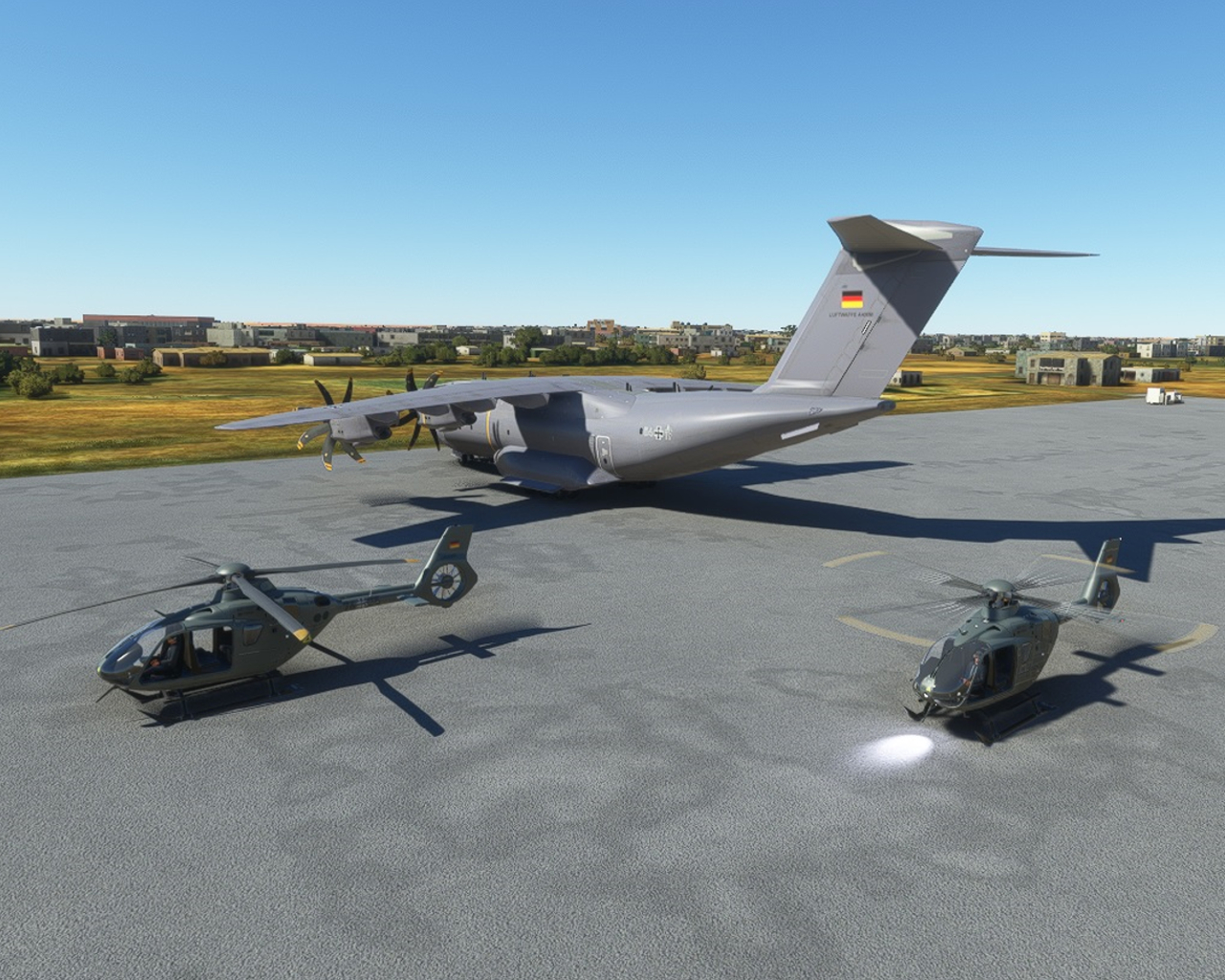 Ein mit JoinFS erstelltes Formations-Konturflugszenario mit zwei Einsatzhelikoptern der LUH SOF. Hier dargestellt durch die Freeware HPG H135. Vlt. kaufe ich mir doch noch die H145...